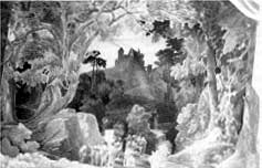 Hoe prachtig kan de voorstelling uit Lohengrin worden. De koning, zijn heerschare, mannen en vrouwen, hebben zich langs de oever van de Schelde verzameld; de zwaan met het noodlottige bootje is al aangekomen: nog eenmaal keert de dierbare held zich tot Elsa voor het laatste moeilijke afscheid; zijn blik moet zich wel in de diepten van ieders ziel boren, iedere toeschouwer moet de verschrikkelijke pijn meebeleven; in droefenis, in onuitsprekelijke smart kijken de omstanders naar de scheldenden; de vriendelijke, door het noodlot gekwelde man; van smart doordrongen is de stomme blik die de zwaan op Lohengrin richt (hoe aandoenlijk kon het penseel van de schilder dit alles uitvoeren) -Zo stel ik mij het beeld van Lohengrin voor. En voor het ontwerp van Heckel die in 1877 met hetzelfde thema bezig is op Neuschwanstein, komt de instruktie: Zijne Majesteit wenst, dat in deze nieuwe schets het schip verder van de oever verwijderd wordt, vervolgens dat de stand van het hoofd van Lohengrin minder schuin wordt, ook moet de ketting van het schip naar de zwaan niet uit rozen bestaan maar van goud zijn en moet de burcht in middeleeuwse stijl gehouden worden. Onder invloed van de gelukzalige beleving van de poëzie voelde Ludwig ll zich onderwijl gedrongen tot een dírekt herbeleven, ja zelfs naspelen van de handeling om door zintuigelijke beleving de illusie te bereiken dat het allemaal echt was. Nog in de zomer van 1877 liet hij niet ver van de Hundinghütte in het Ammerwoud bij slot Linderhof, stipt volgens Wagners libretto, als een nog uitgebreider decor de kluizenaarswoning van Gurnemanz' uit de derde akte van Parsifal optrekken. Hij schreef Wagner daarover het volgende: In hetzelfde woud liet ik deze zomer een kluizenaarshut bouwen tegen een rots, zoals de hut van Gurnemanz, bij een wei, die volgend jaar een fraai bloeiende beemd zal zijn. Alles doet me denken aan die morgen van Goede Vrijdag uit uw verrukkelijke Parsifal, die met een overweldigende kracht tot in het diepst van mijn ziel drong en tranen van de heftigste en zuiverste ontroering in mijn ogen liet komen; ik, die toch waarlijk niet gewend ben om te wenen. 2) karton: tekening ter grootte van het te maken schilderij, voorbeeld voor muurschilderingen, gobelins enzovoort |