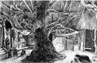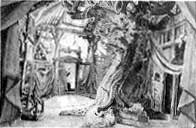 13) Decor van de Walkure, eerste akte, 1870 De hut van Hunding is gebouwd om een es. |