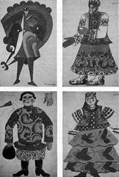 Ook dit kunstenaarsechtpaar werkte voor Diaghilev. Hun werk is gebaseerd op de Russische folklore maar sluit tevens aan op het theaterconstructivisme dat zich in die tijd in Rusland ontwikkelde.