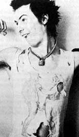 Uit: Rosemary Harden: Punk. in: Anziehungskräfte, Variété de la Mode 1786 - 1986. Mnchen Stadtmuseum Sid Vicious van de Sex Pistols