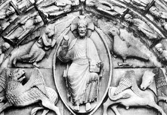 Chartres, Timpaan met Laatste Oordeel, Christus tussen de vier dieren |
