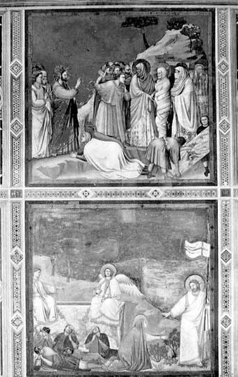 Giotto, boven: De opwekking van Lazarus Onder: Noli me tangere |