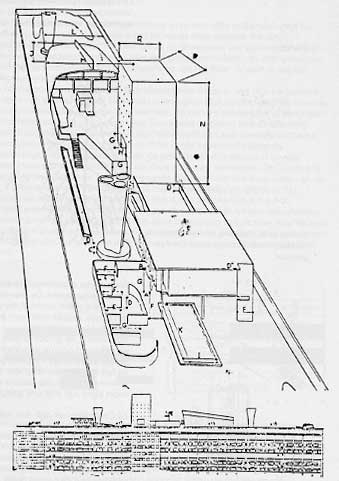 Le Corbusier, Dak van de Unité d'Habitation, Marseille, 1945-52 Maten ontleend aan de modulorreeksen B(blauw) en R (rood) A vloerdikte 338 B dak met opstand 43R C basis van de ventilator 868 D hoogte van de scheidingswanden 1138 E lage muren 1408 F diverse muren 1838 G hoogte van de 'moederkamer' 226a H bar 2968 I breedte van het kinderbadje 3668 J hoogte van de sportzaal 4798 K lengte van het zwembad 7758 enz.