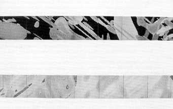 Op een lange wand in galerie Art & Project is op lange stroken van tegen elkaar geplaatste kleurenfoto's te zien hoe Struycken daar een aantal computerprogramma's op heeft losgelaten, die tot de meest uiteenlopende beelden hebben geleid. Beelden die niet beschreven kunnen worden omdat ze, behalve uiterst gecompliceerd, aan niets te relateren zijn. 'Er is geen structuur te zien', schreef Gerrit Krol eens over het werk van Struycken - dat hij zeer bewondert -'omdat er zoveel structuren door elkaar lopen dat ze elkaar opheffen tot een geheel: je ziet het, maar aanwijzen kun je het niet.' Zo zie je bijvoorbeeld op een van die meterslange, maar tamelijk smalle stroken hoe de kleuren golfbewegingen maken. Lange golven en korte golven die de kleuren lijken op te jagen. In een opwaartse of neergaande beweging, waarbij de drie primaire kleuren zich met elkaar kunnen vermengen tot zeer gevarieerde toppen of dalen van kleurnuances ontstaan. En ook in een voor-of achterwaartse beweging, met een zelfde resultaat, alleen is de indruk van snelheid daarbij groter, wat mogelijk wordt bevorderd door het langgerekte, horizontale fomaat van het werk. Als je dit beeld al met iets zoou moeten vergelijken, dan zou misschien de branding langs een eindeloze kust iets zijn, maar dan tot in de uiterste finesses van kleur, ruimte en beweging geanalyseerd. |