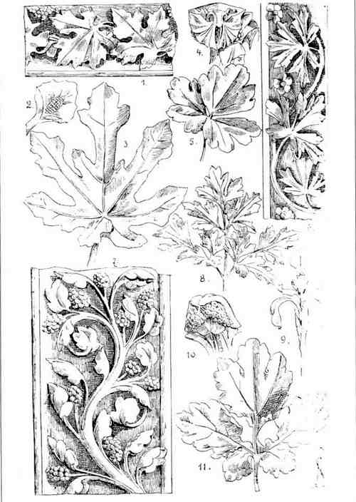 | Deze miséricordes zijn in het algemeen voorzien van wereldse onderwerpen (soms zelfs enigszins gewaagd), omdat het niet betamelijk werd geacht om op een religieuze voorstelling te gaan zitten.(...) De voorstelling op de linker afbeelding is blijkbaar een motief voor de buitenkant en niet voor een tussenscheiding. Het is minder uitgewerkt, lichter en simpeler dan het motief van de afbeelding rechts, waarvan de compositie gelijk is, maar meer versierd, meer plantaardig. Het bijschrift van Villard luidt: ...'se vs voles bien ovrer d une bone poupee a un estaus a cesti vs tenes' of in de vertaling 'als u een goed decoratief ontwerp wilt maken voor een koorstoel dan heb je er hier een.' Deze beide ontwerpen hebben aan de onderkant verbonden bogen. Het motief van de linker afbeelding laat twee bogen zien zonder tussensteun, het rechter ontwerp toont twee bogen met driepas op een samengestelde centrale zuil. | ||