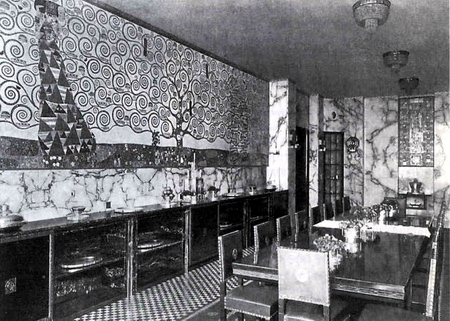 Klimt ontwierp voor de eetkamer, riep visioenen op van intieme liefdesscènes