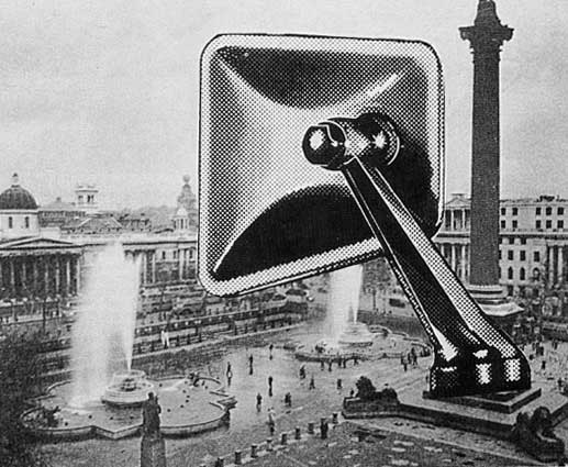 Nadat je in 1965 de eerste serie monumenten voor New York afrondde, dacht je er toen over om ook voor andere steden monumenten te ontwerpen? Niet totdat ik weer begon met reizen. New York was mijn favoriete 'werkruimte', mijn belangrijkste speeltuig. Ik maakte speelgoed voor mijn stad onder de steden. In 1966 ging ik naar Zweden, Noorwegen en Londen. In Stockholm kreeg ik enthousiaste reacties op mijn voorstellen die in de kranten verschenen. De Zweden geloven in technologie. Het leek alsof ze geloofden dat mijn monumenten eens daadwerkelijk konden worden gebouwd. Op een billboard dat door het Moderna Museet voor mij was gehuurd in het centrum van de stad toonde ik zes voorstellen in de vorm van fotovergrotingen . (...)Om monumenten in een nieuwe stad te kunnen maken, moet je die stad gaan gebruiken als een atelier. |