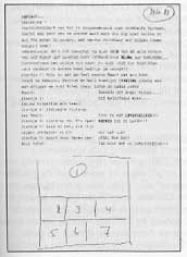 | De ballonnen nemen een materiële vorm aan, ze worden in de hand gehouden als schotels of tennisrackets. Ze veranderen in dieren die de woorden van anderen verslinden. Ze krijgen gezelschap van de sprekende kanonnen, die uit elkaar worden geslagen door de raket van een wiskundige formule. Een spreker verandert zichzelf in een ballon beladen met scriptvellen die uit zijn mond schieten alsof hij een geldautomaat is. Uit de monden van eenmalige persoonlijkheden komen reusachtige woord-constructies, ingewikkelde uurwerken van gedachten, stevige hekwerken en architectonische ornamenten. Een hond blaft een vurige zigzag, een piano bouwt een waterval van arceringen; een cellist lekt een zichzelf verbredende zwarte spiraal; op een berg van koeterwaals die hij op het punt staat uit te spreken, gebaart een redenaar die een spiekbriefje is. Vanachter ziin bureau richt een autoritaire heer op iemand die een aanvraag doet een tekstscherm dat de vorm krijgt van NO. (...) | ||