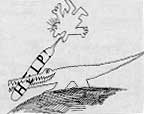 Saul Steinberg Van de man in gevaar is zijn noodkreet het meest kwetsbare deel. Dat geeft de krokodil grip op hem en functioneert als een hapje vooraf. Wat wil ik daarmee zeggen? Dat degene die zijn vrees uitschreeuwt, het slachtoffer wordt van zijn eigen uitroep. (Steinberg) |