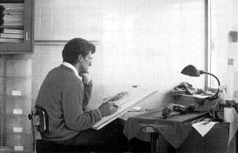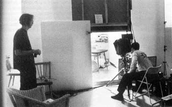 Terwijl 'Insomnia', een tableau vivant van een sjofele, kale keuken waarin een man onttakeld op de grond ligt, is gemaakt met behulp van een acteur. (...) 'Ik was altijd al geïnteresseerd in de geschiedenis van het beeld, ook al was die in de moderne kunst verdwenen. De avantgarde overdreef door per se te willen breken met de traditie sinds de renaissance. Ik vond de scheiding tussen traditionele en moderne kunst onzin, al moet ik toegeven dat de schilderkunst wellicht niet geschikt was om de beeldtraditie in zijn sterkste vorm te laten terugkeren. Het leek me interessanter om met fotografische middelen schilderijen te maken.' Sommige foto's lijken dan ook meer op een schilderij van Goya of Géricault dan op fotografie. Het portret van de kunstenaar Adrian Walker bijvoorbeeld, is uiterst barok in zijn compositie. Het toont hem in een karakteristieke pose met de bijbehorende attributen: tijdens het tekenen van een anatomische studie naar een spiermodel van een hand die voor hem op tafel ligt. Net als 'The Giant' is het te lezen als een soort manifest: de hedendaagse kunstenaar staat in een eeuwenoude traditie en maakt met zijn camera, de paintbox en digitale beeldtechnieken een reus zoals Goya eerder met verf deed. 'Het voordeel is dat een beeld niet hoeft te bestaan, je kunt het maken', zegt Wall. 'Ik kan de tradities en de technieken van de film naar behoeven combineren met die van de fotografie, de schilderkunst, de massacultuur en de performance. Technische problemen kunnen altijd worden opgelost, het hangt ervan af hoeveel geld je wilt uitgeven. Voor 'Insomnia' maakte ik 120 opnamen, het duurde een maand om de juiste te maken. De man die ervoor poseerde, moest telkens opnieuw terugkomen.' |