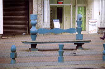 Schabracq en Postma Ook Schabracq en Postma hebben juist als kunstenaars opdracht gekregen voor Amsterdam passend straatmeubilair te ontwerpen. 'Men schrikt als een lantaarnpaal zomaar een vorm heeft', zegt Postma. 'Wij zijn niet brutaal, maar eigenzinnig', zegt Schabracq. Schabracq en Postma zijn geen ontwerpers, maar kunstenaars. 'Als kunstenaar ben je aan de leeuwen overgeleverd', zegt Schabracq. 'Verkopen lukt niet altijd, zelfs niet als je een goede galerie hebt. Dus je gaat les geven of je schrijft in op opdrachten voor kunst in de openbare ruimte. Het is een legitieme manier van bijverdienen.' De dienst Ruimtelijke Ordening was volgens Postma voor het ontwerpen van het straatmeubilair op het Damrak bewust op zoek naar kunstenaars. Men was bevreesd voor een zekere neutraliteit als de opdracht aan een ontwerper zou worden gegeven,' zegt Schabracq. Postma: 'Kunstenaars kunnen de straat een expressief, eigen karakter geven.' 'Men heeft in Nederland te veel verstand van goede smaak,' zegt Schabracq. 'Mooi is hier gelijk aan een simpele vorm en een fraaie kleur. |