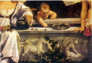 minder duidelijk dan bij het allegorische tafereel van Titiaan. Het is