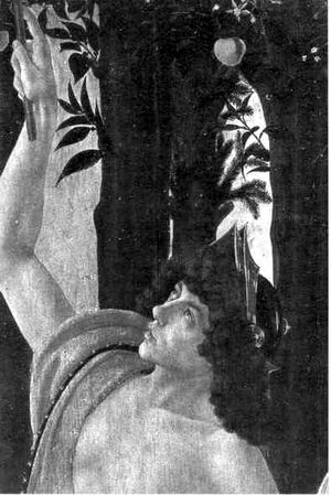 ook een allegorische uitleg van de klassieke mythen en verhalen. Tegen het einde van de vijftiende eeuw concentreerde de allegorische uitleg (van de klassieke mythen en verhalen) zich vooral in Florence. Het is dan ook niet verwonderlijk dat de Florentijnse schilders toen belangrijke en diepzinnige allegorische taferelen vervaardigden. (...) Deze werken verplaatsen ons naar een andere wereld, naar de schimmen op de Elysische velden of naar een oord van abstracte begrippen. Het lijkt wel of de grote raadsels omtrent natuur, dood en wederopstanding zweven rond deze droombeelden van jeugd, liefde en schoonheid, als wezens die neergedaald zijn van een ideale Olympus. Diepzinnige speculaties en galante gebaren zijn hier in een onontwarbare mengeling van symboliek dooreengeweven; de kronieken van een kleine hofkring vermengen zich met de oude legenden over de schepping van de wereld. |