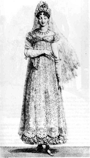 des dames et des modes van 1813. Aanvankelijk wordt een bruidsshawl van
