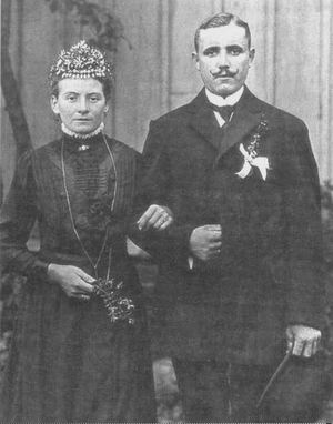 August Sander, Boerenbruidspaar, ca 1914. De bruid draagt een bruidskroontje |