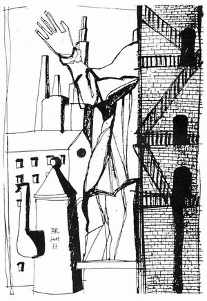 Monumenten zijn plaatsen met een symbolische functie. Ze belichamen het collectieve geheugen van de stad; woonwijken zijn plaatsen met een conventionele functie, die slechts in termen van gebruik is te vatten. Al zijn herinneringen krijgen een speciale kwaliteit tussen gedachte en dimensie door Rossi's bijzondere tekentalent. Rossi's tekeningen zijn vaak ware schilderijen, rijk aan omgeving en atmosfeer, kleurig gewassen en vaak met een melancholisch lichteffect. (...) De tekeningen zijn voor alles ruimtelijk; ze scheppen architectonische volumes en stedelijke omgevingen. Het zijn geen abstracte studies maar vastgelegde visioenen. Hier zet Rossi's nadruk op architectuur als toneel voor het menselijk handelen een verwachtingsvolle toon; de ruimten bergen allerlei mogelijkheden in zich en roepen op een heel intense wijze aanwezigheden op die nog verborgen zijn, maar op het punt staan naar voren te treden, groot en melancholiek als acteurs in een klassieke tragedie. |