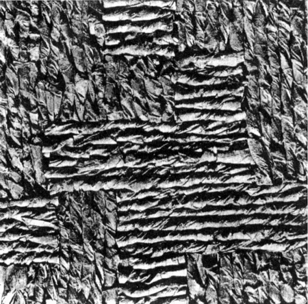 Hun hele milieu werd opnieuw ontdekt, ruwe stukken hout en spaanders, staalwol, draden, snoeren, gepolijst hout en schapewol, veren, glas, metaalfolie, roosters en vlechtwerk van allerlei aard, leer, bont en gladde conservenblikken. Manuele vaardigheden werden ontdekt en nieuwe texturen werden gevonden. Een krankzinnige knutselarij begon en de zo gewekte speurzin vond een onuitputtelijke rijkdom aan texturen en combinatiemogelijkheden. De leerlingen merkten dat hout vezelig, droog, ruw, glad of gegroefd, dat ijzer hard, zwaar, glanzend of mat kon zijn. Ze onderzochten tenslotte met welke middelen deze textuureigenschappen konden worden afgebeeld. Voor de toekomstige architecten, ambachtslieden, fotografen, grafici en industriële vormgevers waren deze studies van grote waarde. |