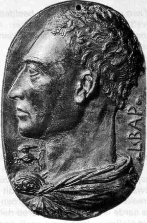 De weinige werken van zijn hand zijn verre van volmaakt, maar dat is niet verwonderlijk want hij was meer geïnteresseerd in studeren dan in tekenen. Maar hij kon wel in zijn tekeningen goed duidelijk maken wat hij bedoelde. In een aantal schetsen van zijn hand zien we de brug van Sant'Angelo in Rome, voorzien van een overkapping die hij ontwierp als een soort loggia om in de zomer bescherming te bieden tegen de zon en in de winter tegen de regen en wind. (...) Leon Battista was een bewonderenswaardige en zeer ontwikkelde man, een vriend van een ieder met talent en open en hoffelijk tegen iedereen. Hij leefde achtenswaardig als de heer die hij was. Hij werd zeer oud en ging tenslotte rustig en tevreden over naar een beter leven, een eervolle naam en reputatie achterlatend. |