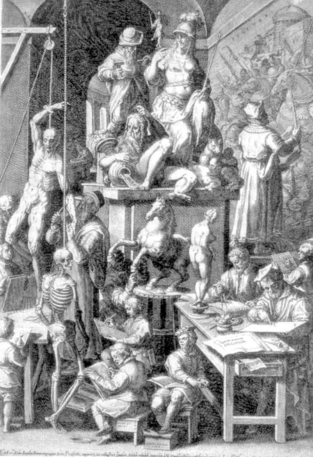 | Prent van een 'kunstacademie' anno 1578 naar Stradanus |