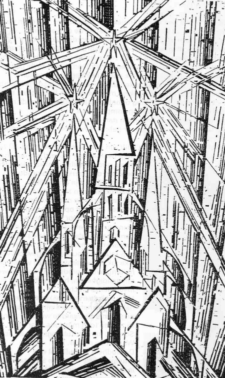 Lyonel Feininger, Titelhoutsnede van het Bauhausmanifest, 1919 | |